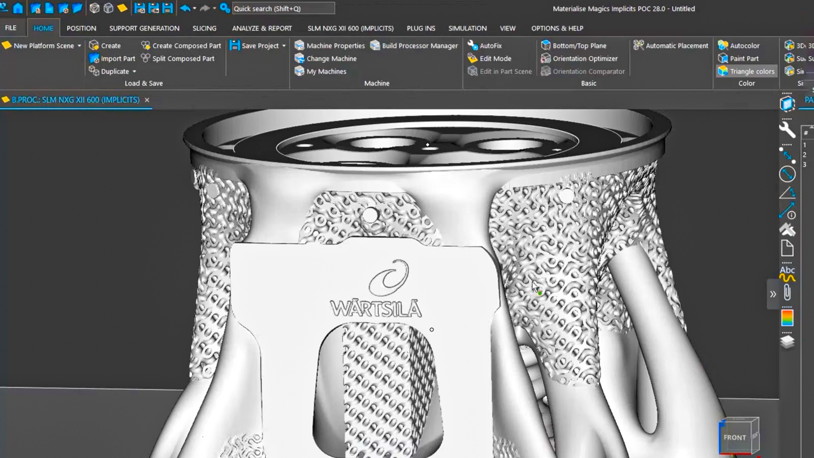 “The bottleneck at Wärtsilä was meshing,” says Rothenberg. “They couldn’t efficiently mesh this component because it would take hours in nTop to mesh it, then once it meshed, it was taking hours to overnight to just open in Magics, then weeks to slice a part the size of the cylinder head.”